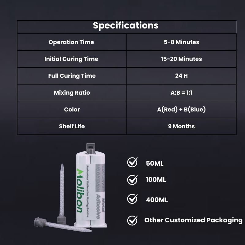 高強度工業用接着にはこれをお選びください 金属ボンダーアクリル接着剤. 両方をしっかりと結合します 金属(鋼鉄,アルミニウム, 銅) そして エンジニアリングプラスチック(ABS,PC)、プライマーは必要ありません。