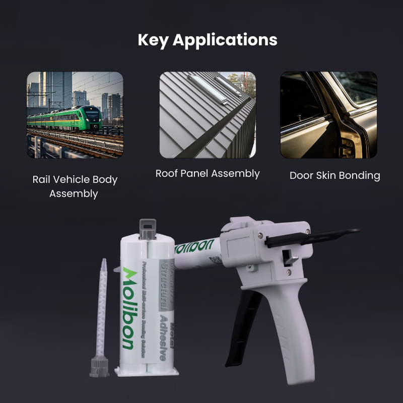 パネル、補強材、構造部品など、列車車体の金属部品の接着に最適です。