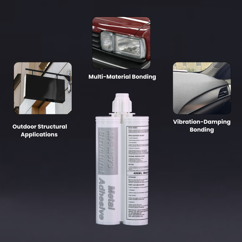 A: MA-M637 は主に金属対金属、金属対プラスチックの組み立てを含む工業構造の接着に使用され、高い強度、柔軟性、耐久性が求められる用途に適しています。