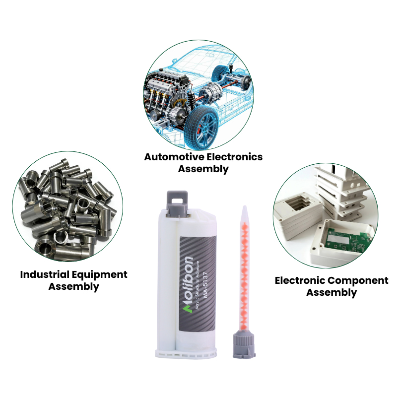 電子機器のハウジング、フレーム、内部構造部品などの金属部品とエンジニアリングプラスチック部品の接着に最適です。