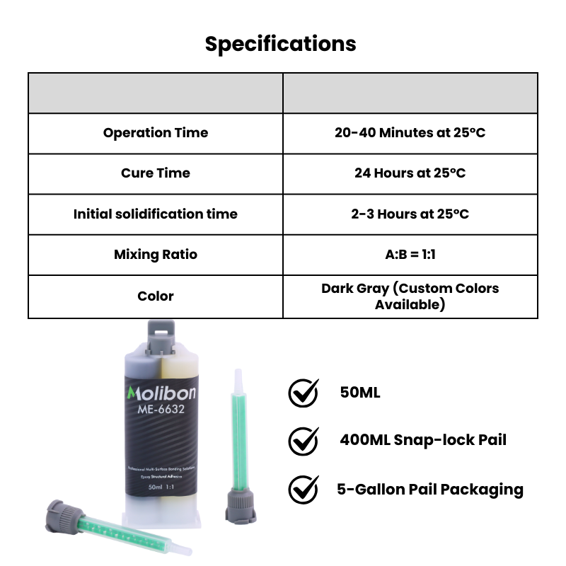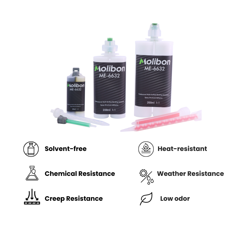 その 2成分エポキシ接着剤多用途で中程度の厚みのエポキシ接着剤です。シンプルな1:1の混合比で、 無溶剤構造接着剤多目的輸送用途に優れた接着強度を提供します。 接着剤50ml 室温で硬化しますが、硬化プロセスを加速するために加熱硬化することもできます。